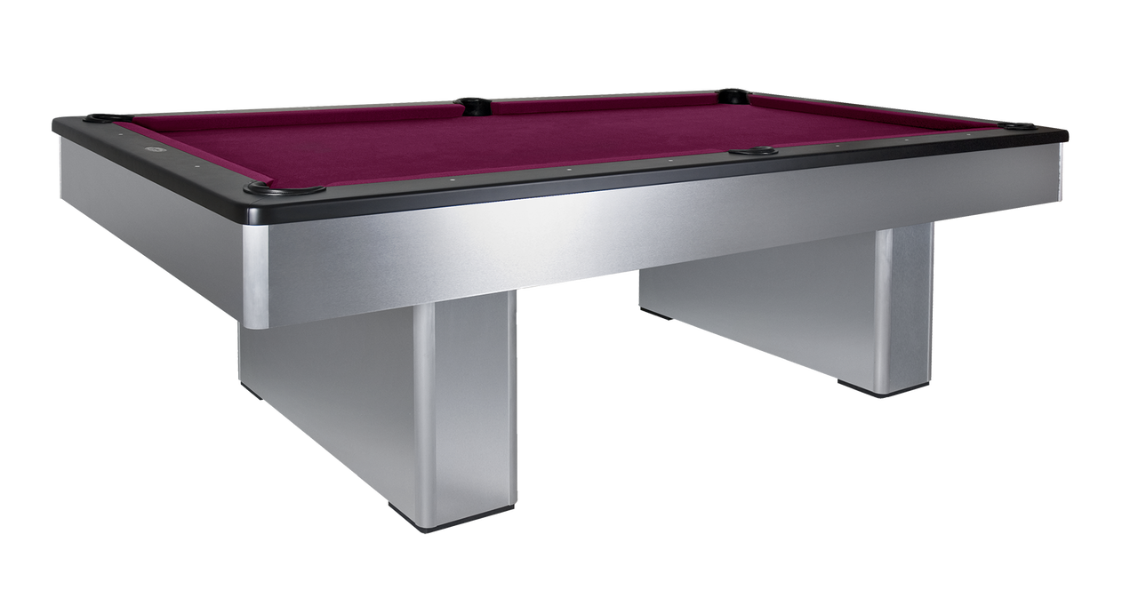 The Monarch Pool table by Olhausen features modern style enclosed solid wood rail system with flat paneled apron with pedestal base legs. All Olhausen Pool tables are hand-crafted at our 250,000 sq. ft. manufacturing facility in Portland, TN and feature Accu-Fast Cushions and our Lifetime Warranty. Color in images are for reference only and not to be used for final color matching. Shades vary due to settings on your device’s screen and/or monitor.- Sizes: 7 ft, 8 ft, 8 1/2 ft & 9 ft